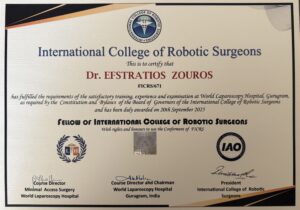Εκπαίδευση στη Ρομποτική Χειρουργική – Διεθνής Αναγνώριση ως Fellow of the International College of Robotic Surgeons (FICRS)